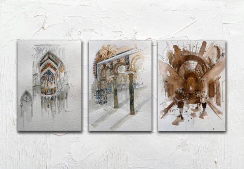 W tej serii wracam do miejsca, od którego wszystko się zaczęło - do architektury. To ona była pierwszą tak blisko doświadczaną przeze mnie sztuką, pierwszą fascynacją, pierwszym sposobem rozumienia świata sztuki. Dorastałam wśród wielu architektonicznych inspiracji z Tatą, architektem z zawodu, który z zachwytem prezentował mi znakomite dzieła architektury, głównie włoskiej, a później sama studiowałam Architekturę Wnętrz. Dziś, jako malarka i ilustratorka, wracam do tego świata z nową wrażliwością - już nie tylko analizując formę, ale czując ją całą sobą.