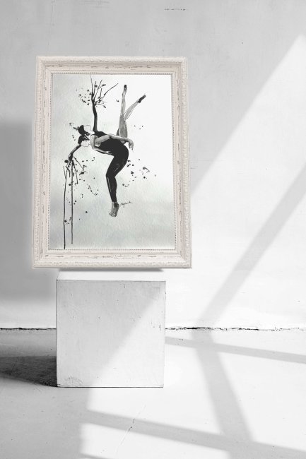 Przed Wami oryginalna ilustracja namalowana tuszem na papierze. Jest to jedna z ilustracji stworzonych w ramach serii "The same dance". Ta oryginalna praca została powielona w druku i jest dostępna w moim sklepie w zakładce plakaty. Tu jednak oferuję Wam wyjątkową możliwość zdobycia oryginalnej wersji.